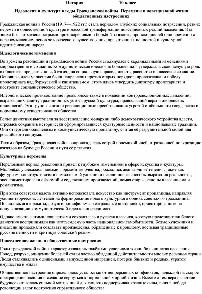 Идеология и культура в годы Гражданской войны. Перемены в повседневной жизни общественных настроениях