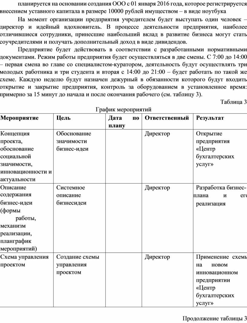 3. Описание содержания бизнес-идеи (формы работы, механизм реализации, план-график