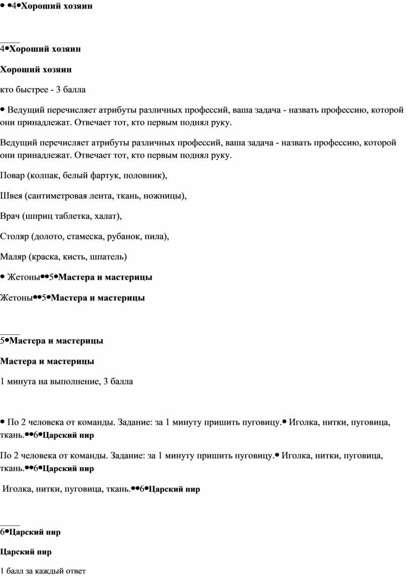 Мастера и мастерицы 1 минута на выполнение, 3 балла