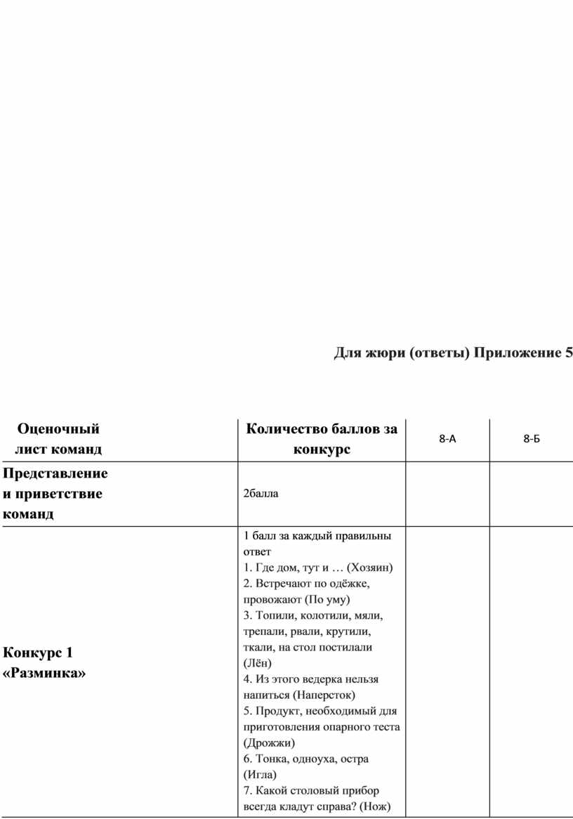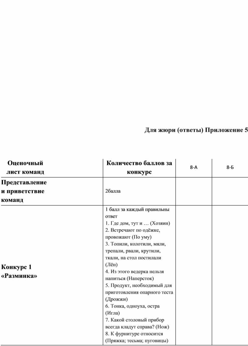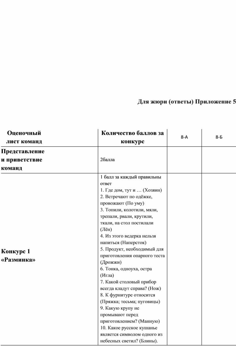 Для жюри (ответы) Приложение 5