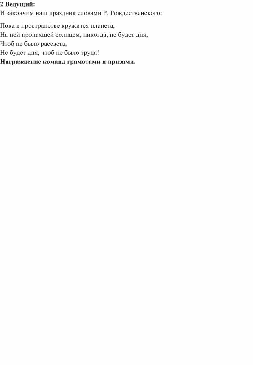 И закончим наш праздник словами Р. Рождественского: