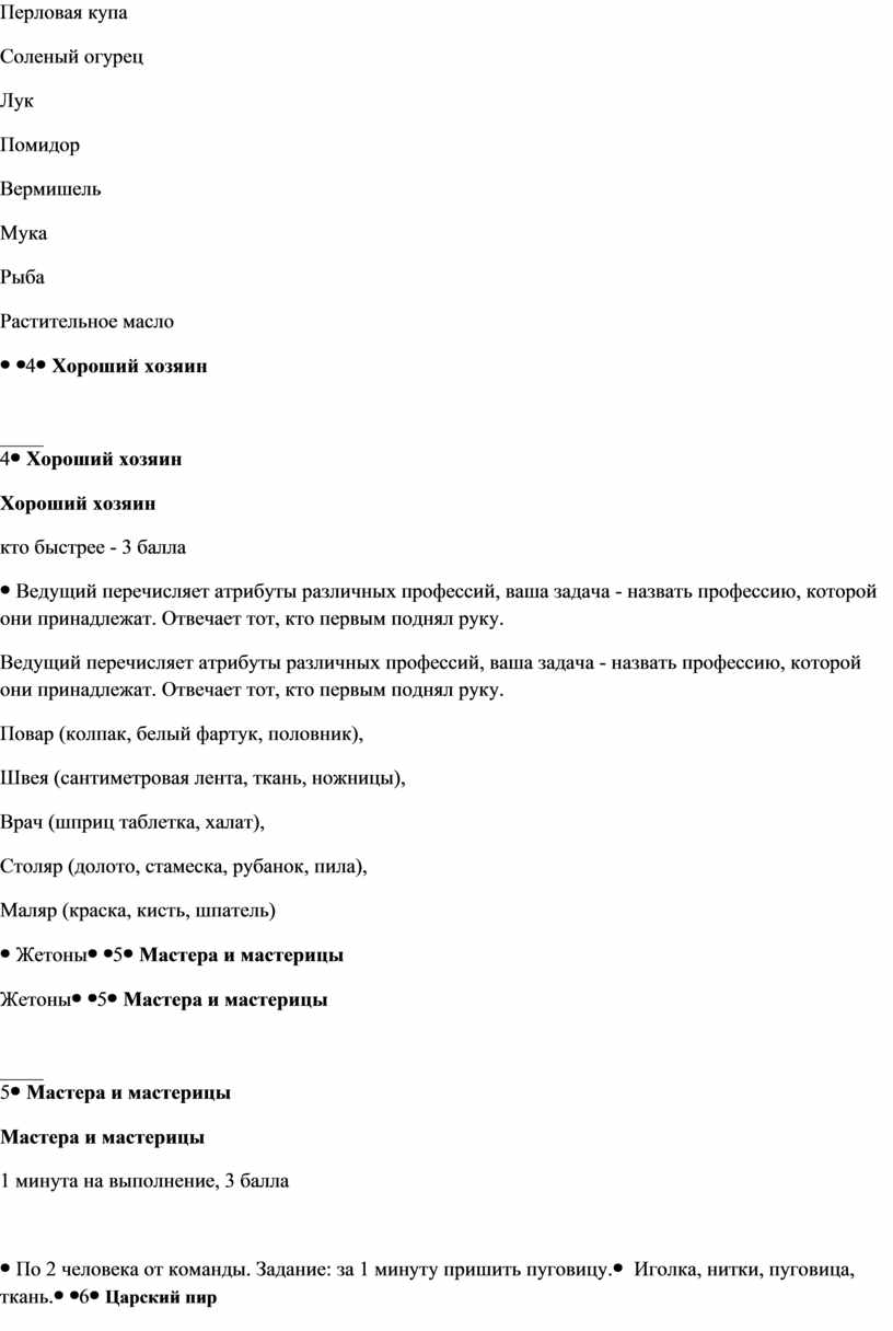 Царский пир 1 балл за каждый ответ