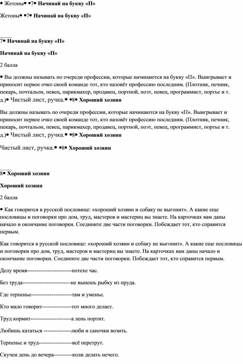 Конкурс 7 «Начинай на букву «П» |
