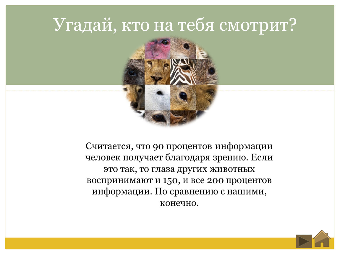 Считается, что 90 процентов информации человек получает благодаря зрению. Если это так, то глаза других животных воспринимают и 150, и все 200 процентов информации. По сравнению с нашими, конечно.