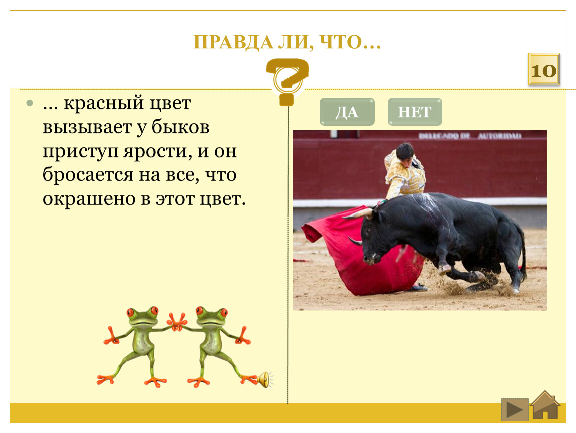… красный цвет вызывает у быков приступ ярости, и он бросается на все, что окрашено в этот цвет.