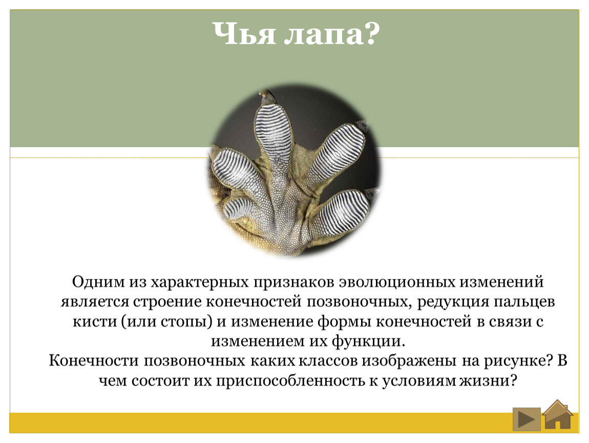 Одним из характерных признаков эволюционных изменений является строение конечностей позвоночных, редукция пальцев кисти (или стопы) и изменение формы конечностей в связи с изменением их функции.