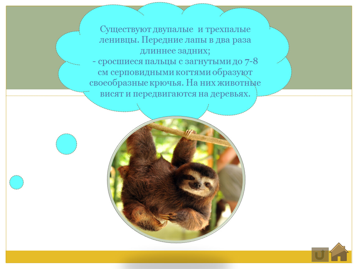 Лапы: Ленивец -http://faunazoo.ru/wp-content/uploads/2014/04/%D0%9B%D0%B5%D0%BD%D0%B8%D0%B2%D1%8B%D0%B9-%D0%BB%D0%B5%D0%BD%D0%B8%D0%B2%D0%B5%D1%86.jpg