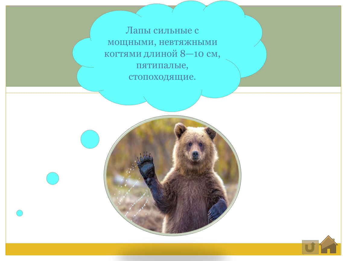 Особенность лапы медведя -https://ru.wikipedia.org/wiki/%D0%91%D1%83%D1%80%D1%8B%D0%B9_%D0%BC%D0%B5%D0%B4%D0%B2%D0%B5%D0%B4%D1%8C