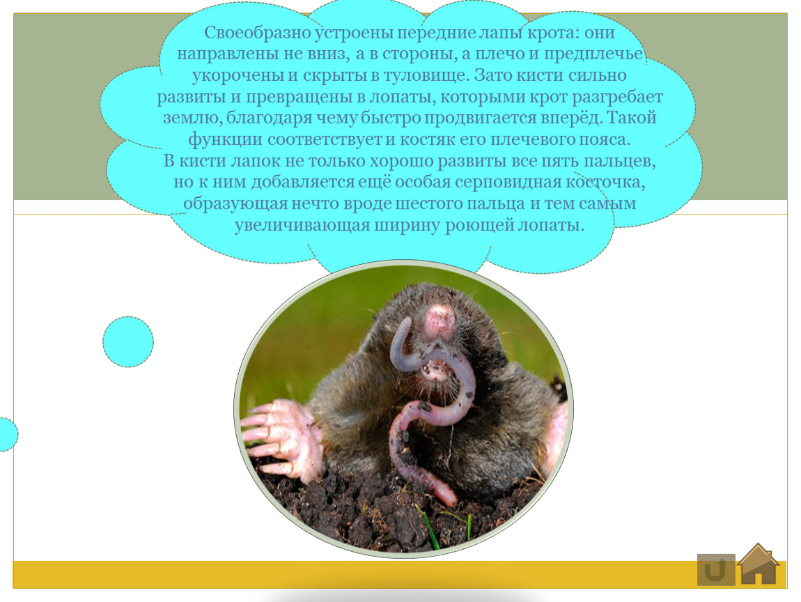 Особенность лапы крота - http://www.5zaklepok.ru/pages/791.htm