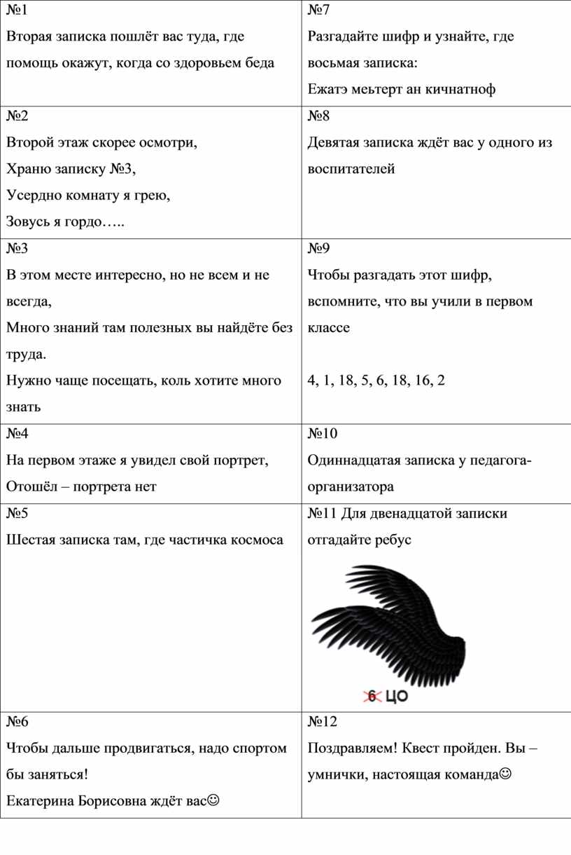 №8 Девятая записка ждёт вас у одного из воспитателей |
