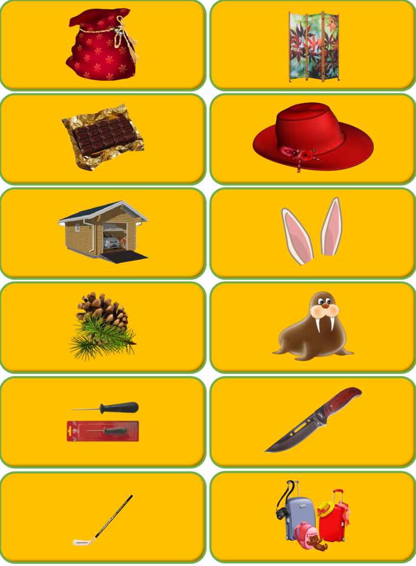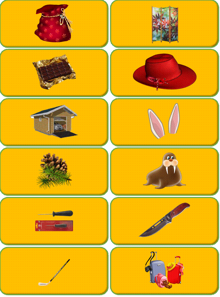 Оборудование: карточки с картинками предметов и мешков.