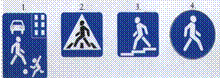 • Какие из указанных знаков обозначают участки, на которых водитель обязан уступать дорогу пешеходам, находящимся на проезжей части?