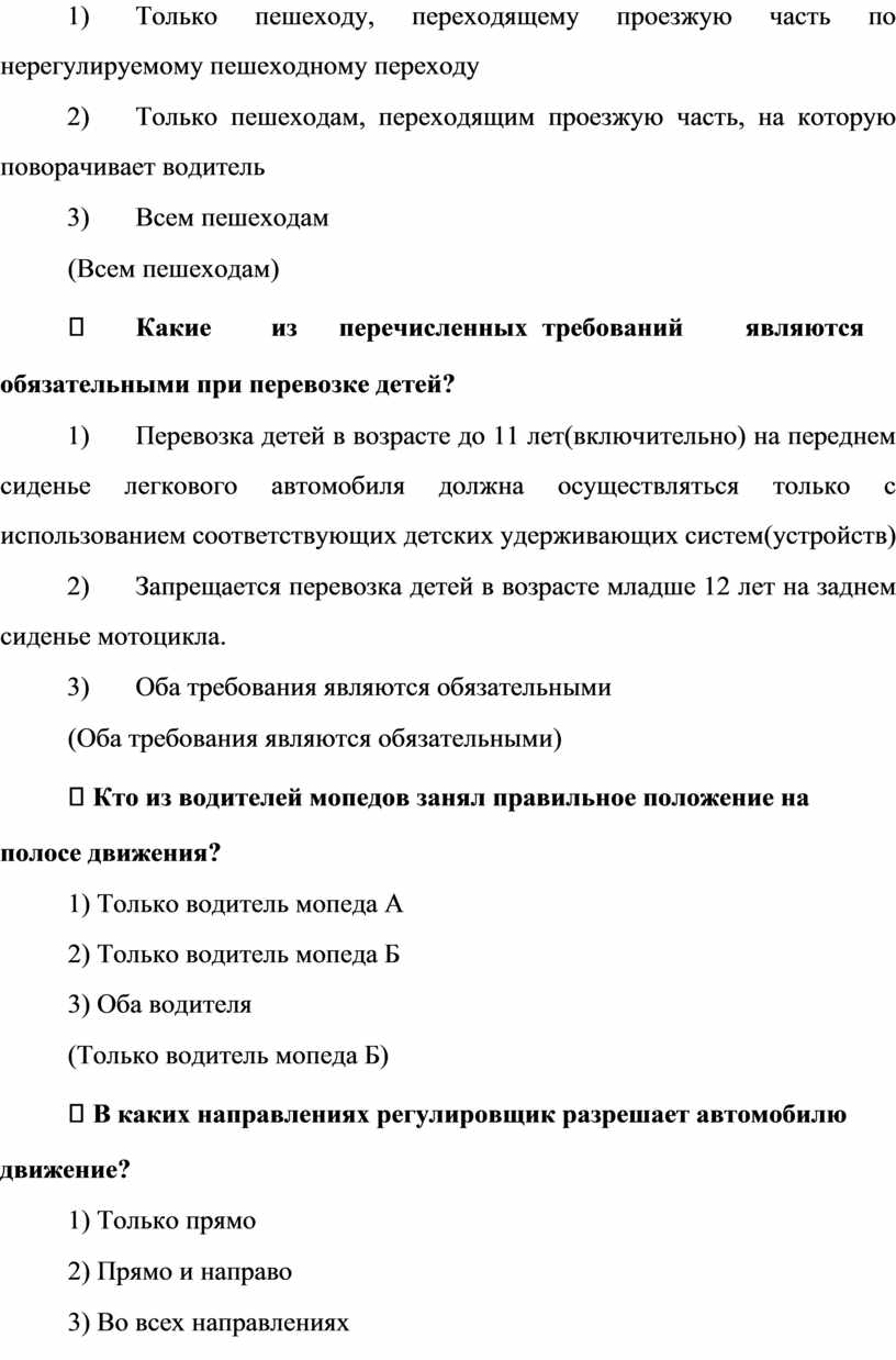 Какие из перечисленных требований являются обязательными при перевозке детей?
