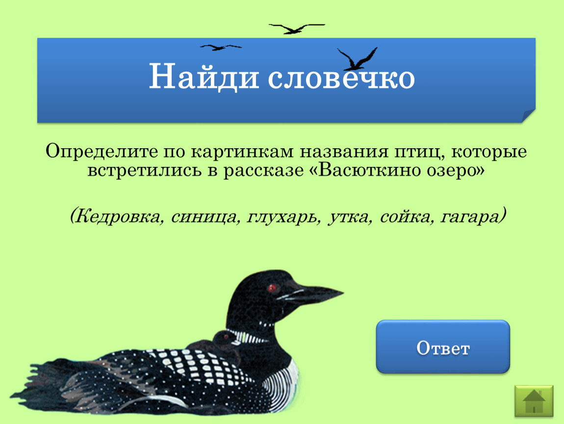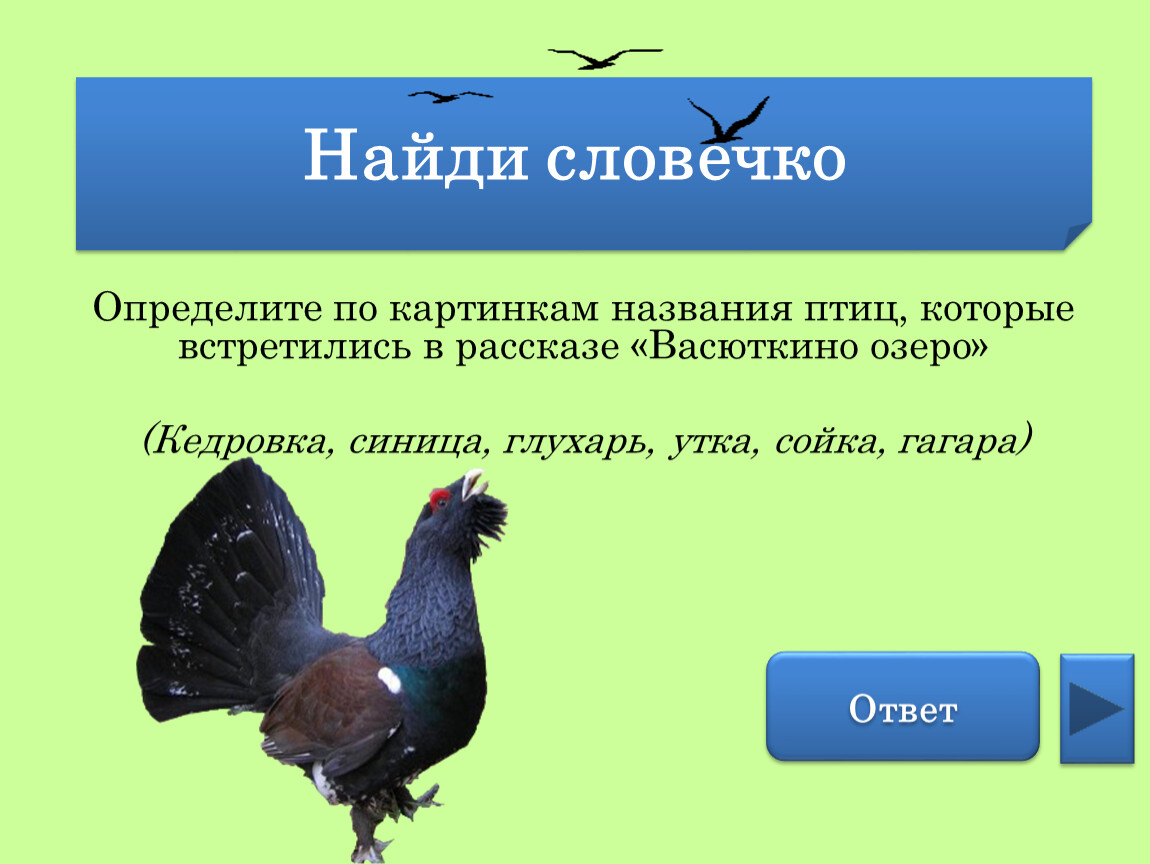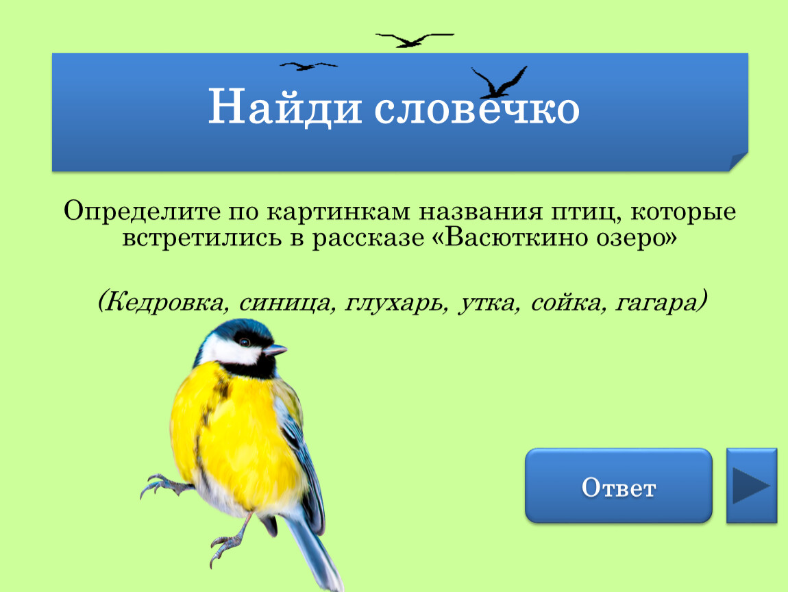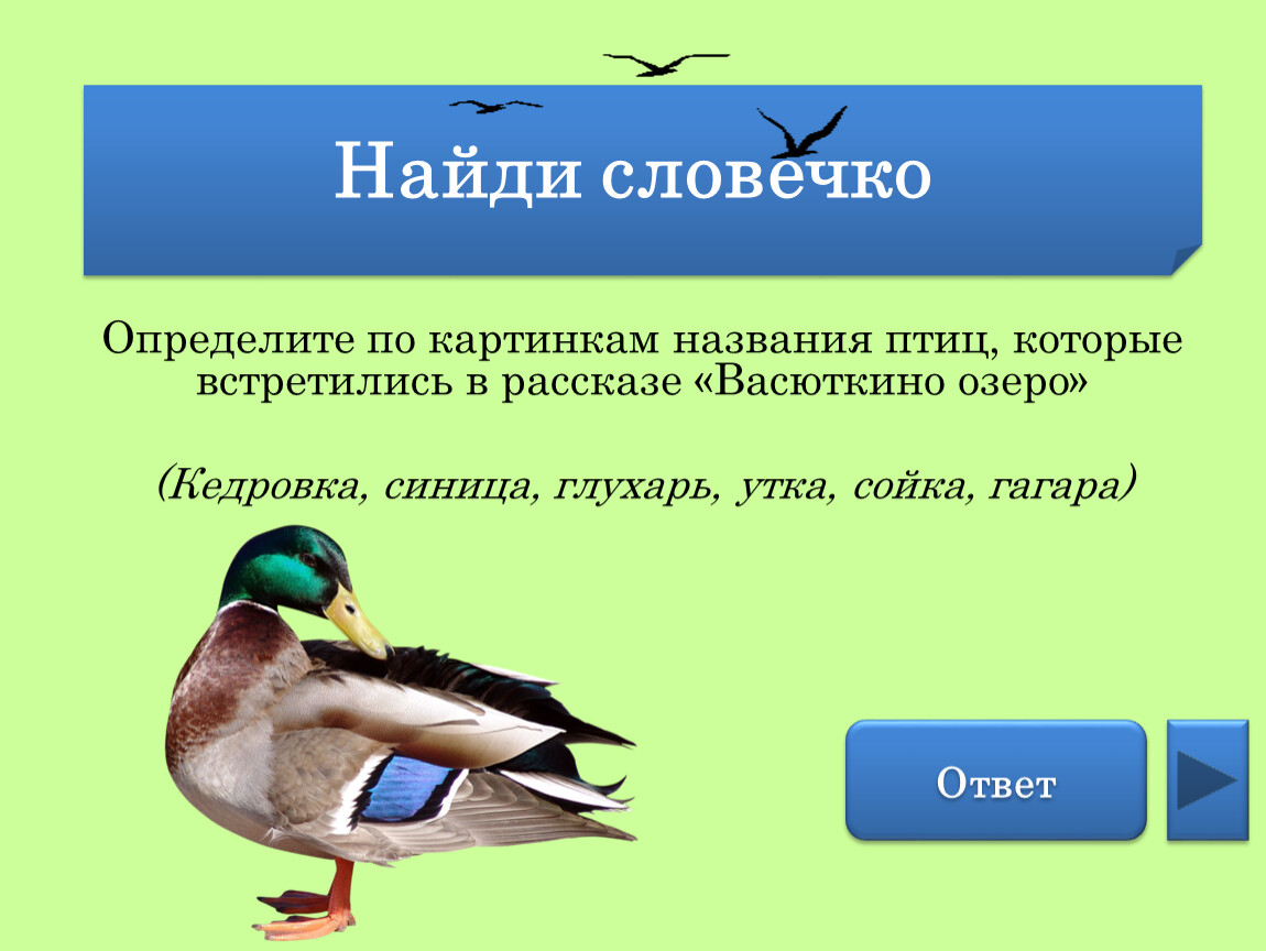 Определите по картинкам названия птиц, которые встретились в рассказе «Васюткино озеро»