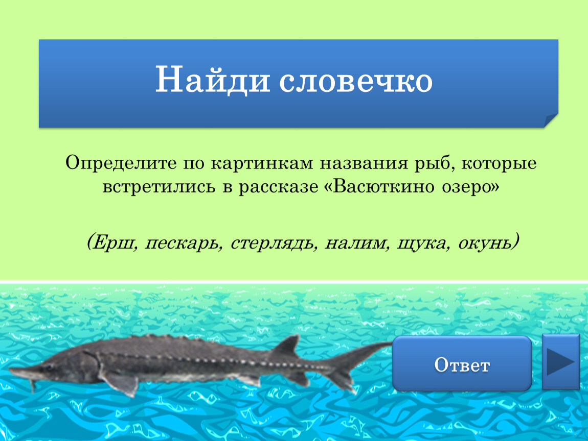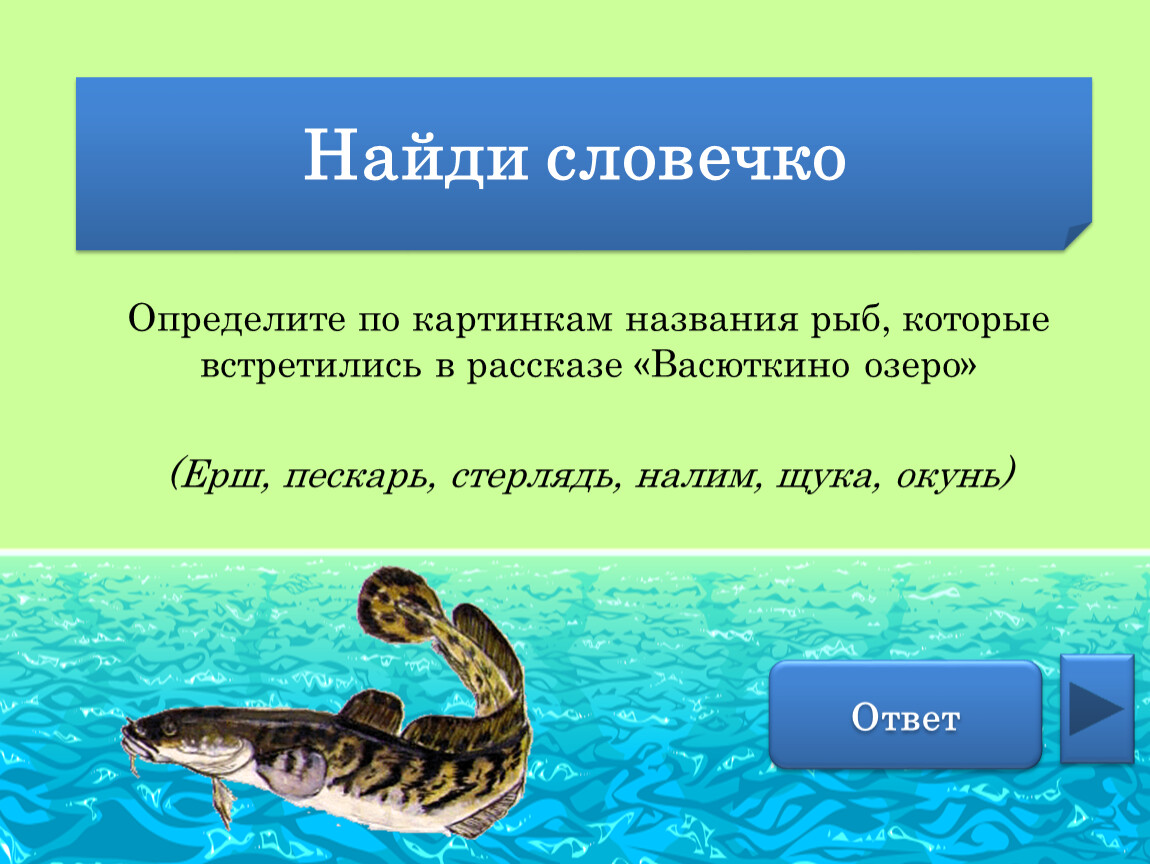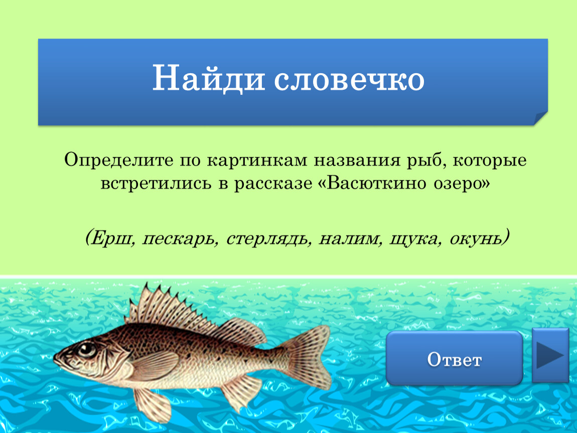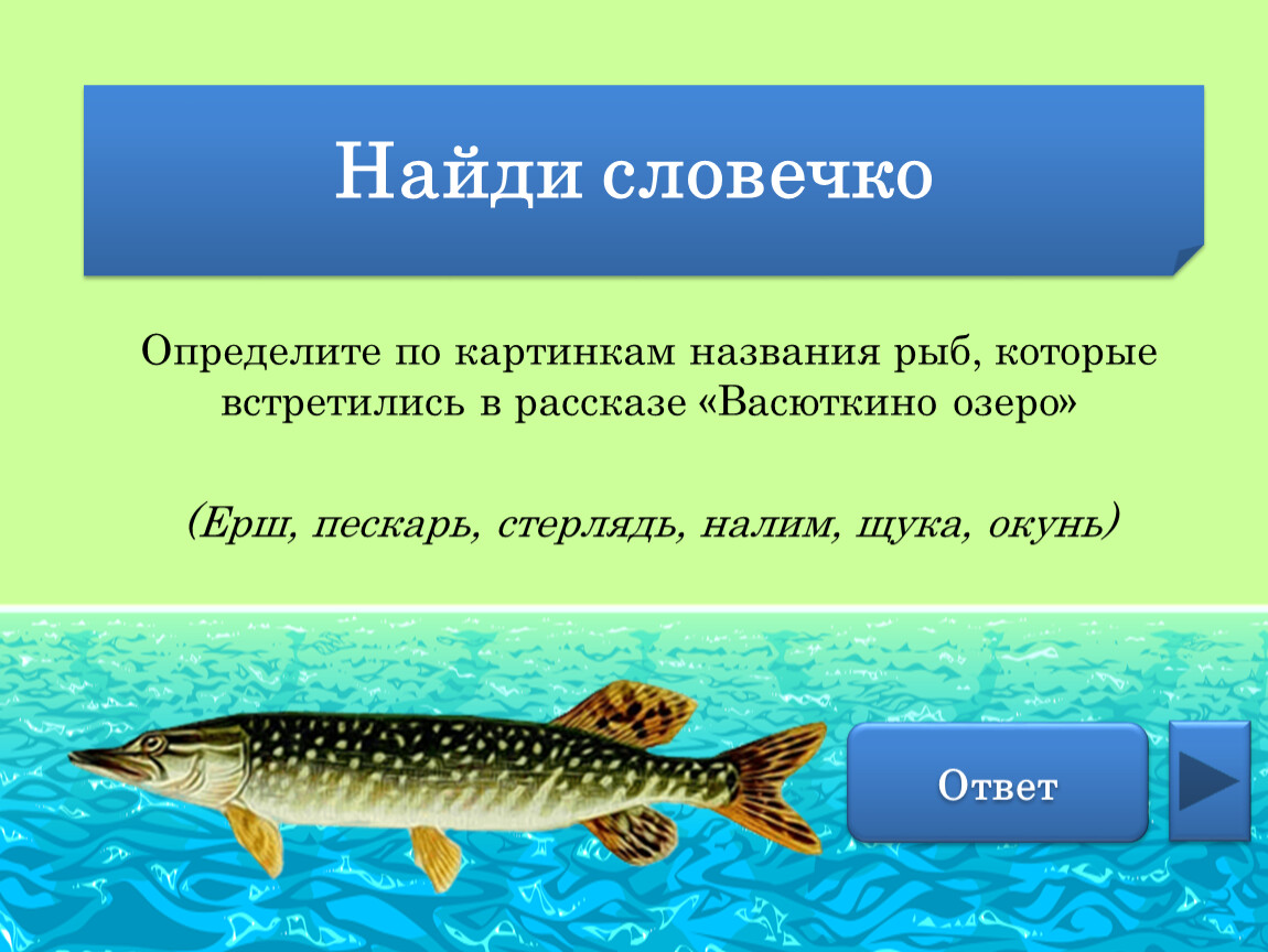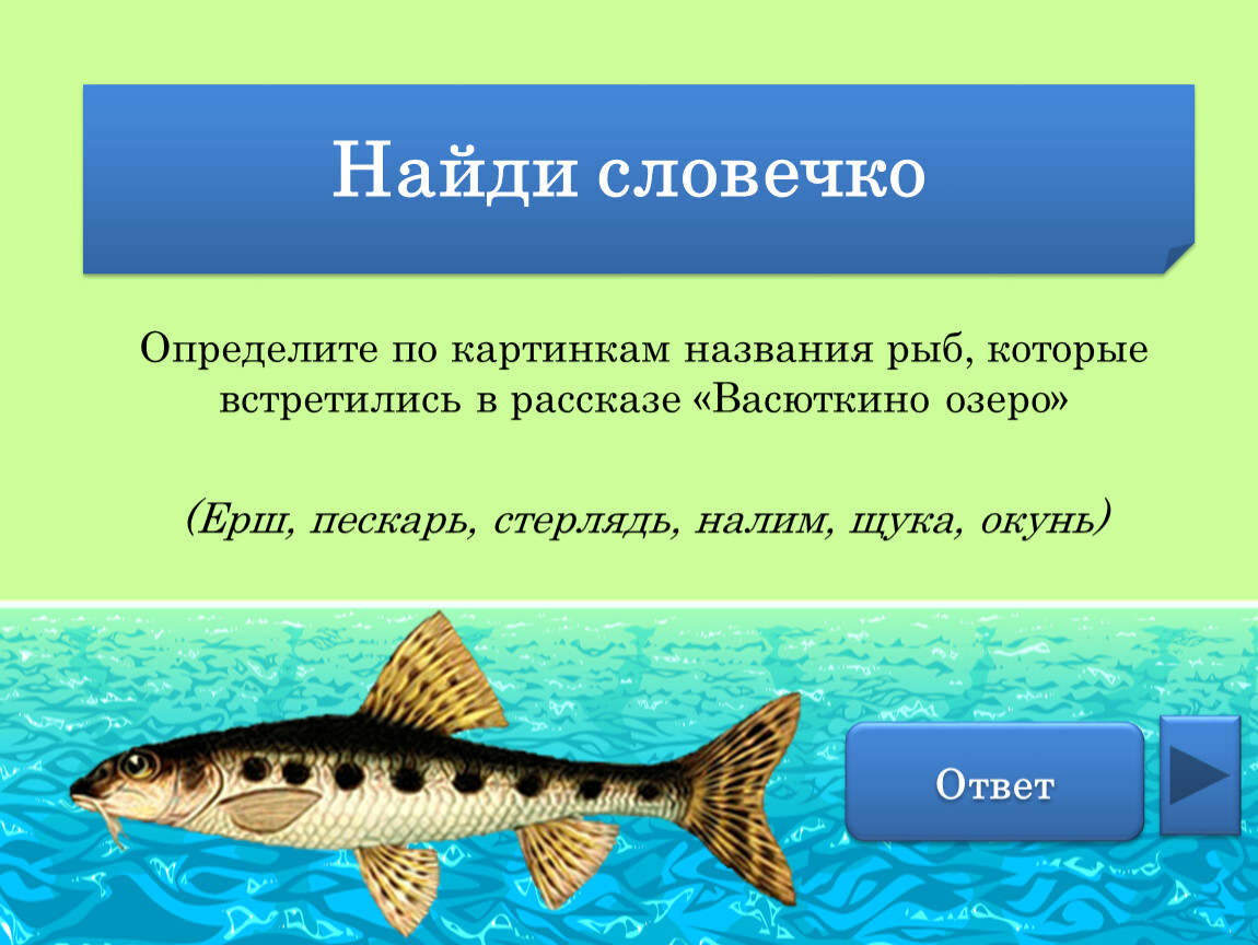Определите по картинкам названия рыб, которые встретились в рассказе «Васюткино озеро»