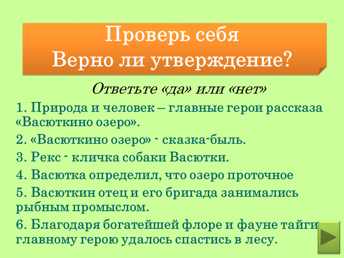 1. Природа и человек – главные герои рассказа «Васюткино озеро» ДА
