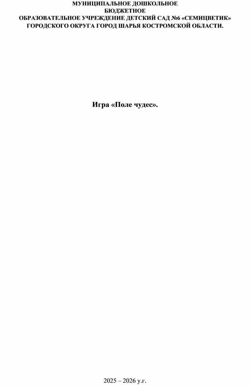 ОБРАЗОВАТЕЛЬНОЕ УЧРЕЖДЕНИЕ ДЕТСКИЙ САД №6 «СЕМИЦВЕТИК» ГОРОДСКОГО ОКРУГА ГОРОД ШАРЬЯ КОСТРОМСКОЙ ОБЛАСТИ.