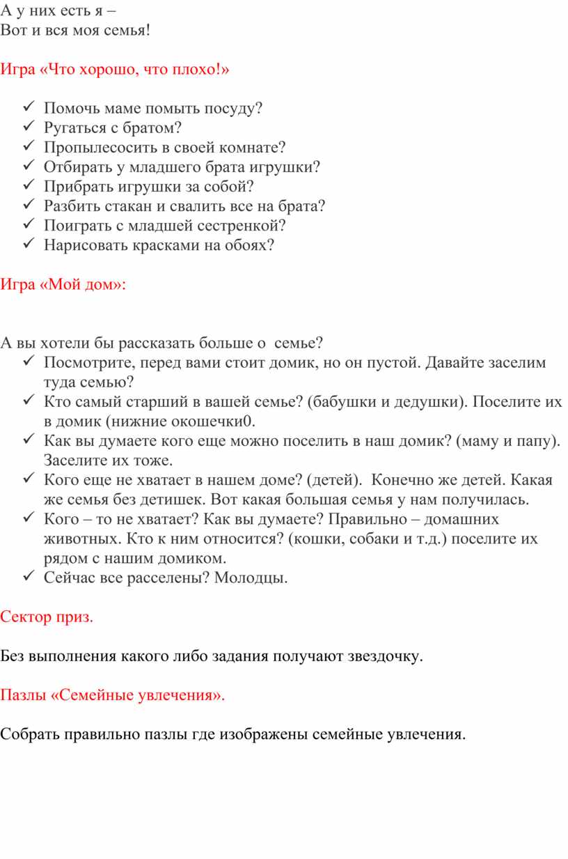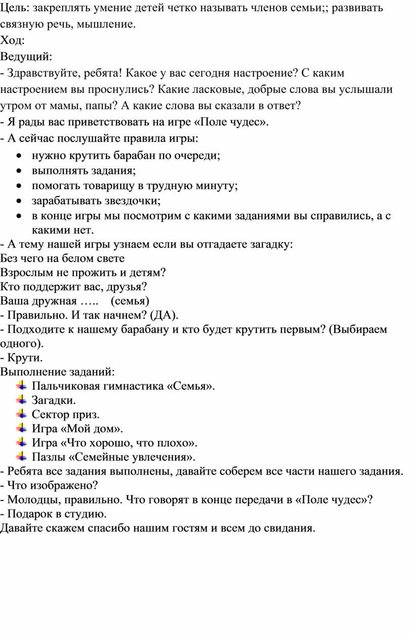 Цель: закреплять умение детей четко называть членов семьи;; развивать связную речь, мышление.