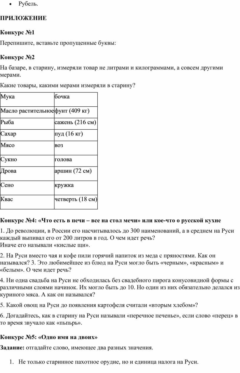 Какие товары и какими мерами измеряли в старину? (4 минуты)