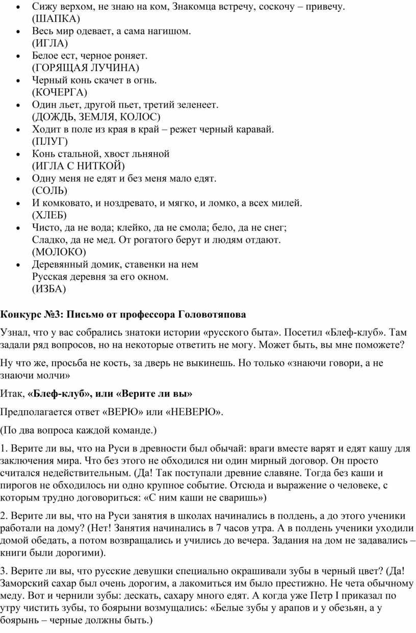 Узнал, что у вас собрались знатоки истории «русского быта». Посетил «Блеф-клуб». Там задали ряд вопросов, но на некоторые ответить не могу. Может быть, вы мне поможете?