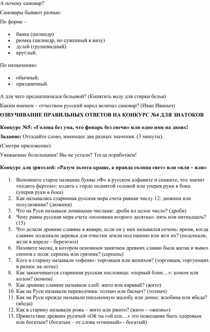 9. Верите ли вы, на Руси умели приготовить сапоги «всмятку»? (Да! Так называли сапоги с голенищами-гармошками. Чтобы их сделать, особым способом мяли кожу – вот и получали сапоги «всмятку».