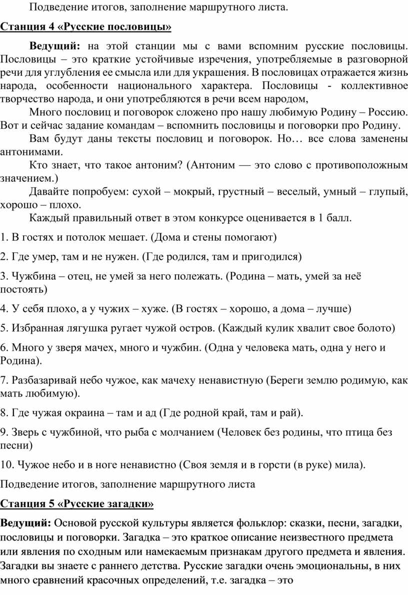 o Станция «Русские пословицы»