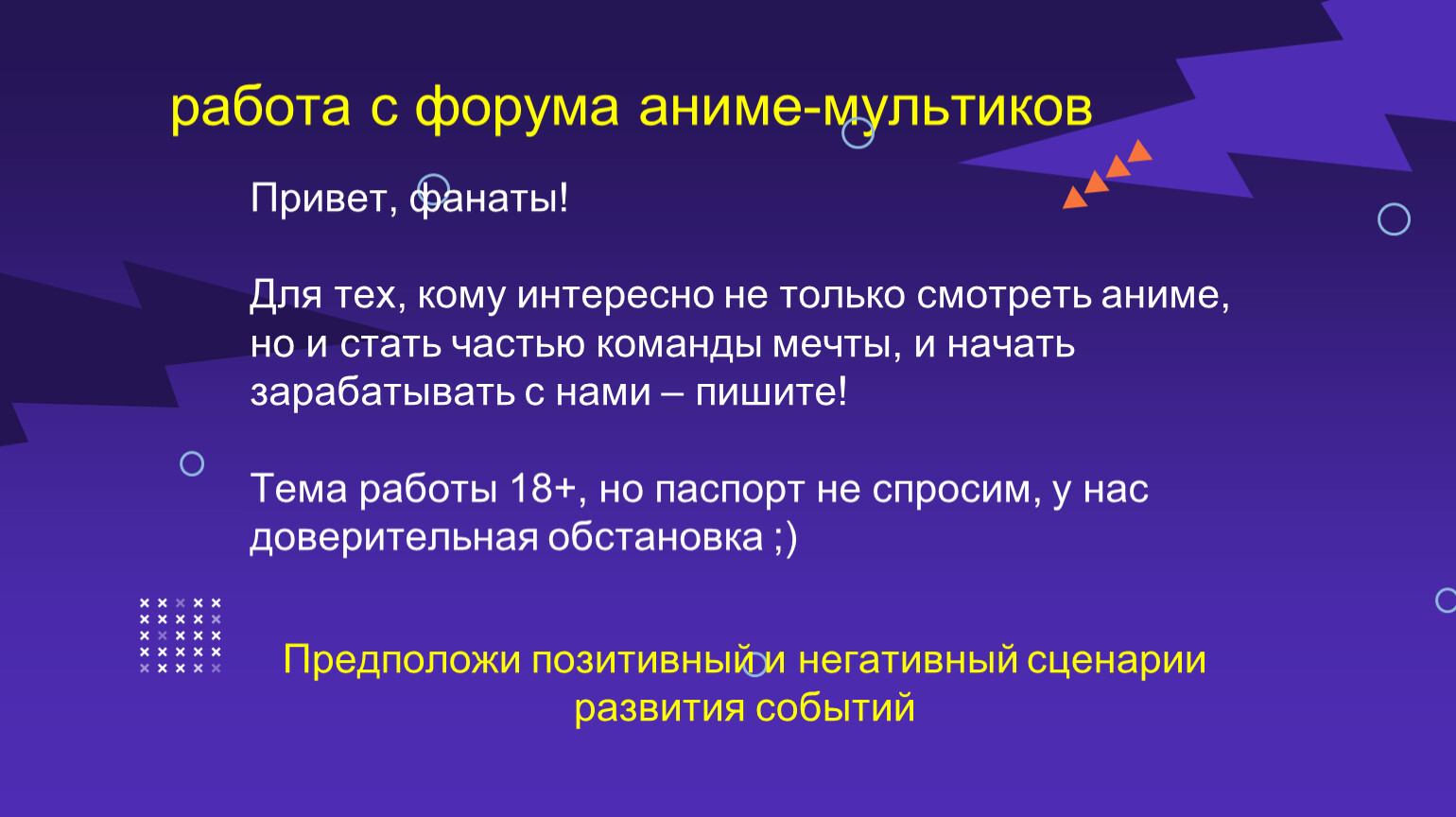 Для тех, кому интересно не только смотреть аниме, но и стать частью команды мечты, и начать зарабатывать с нами – пишите!