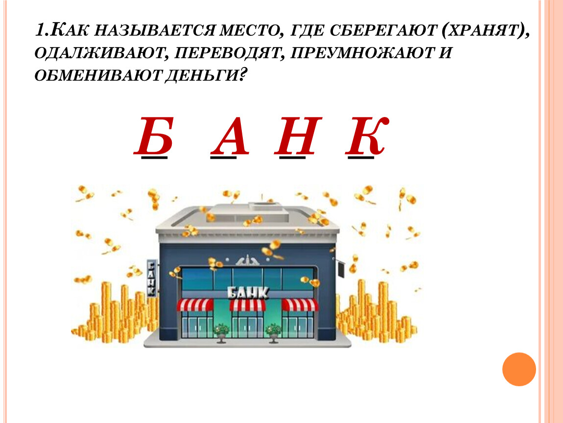1.Как называется место, где сберегают (хранят), одалживают, переводят, преумножают и обменивают деньги?