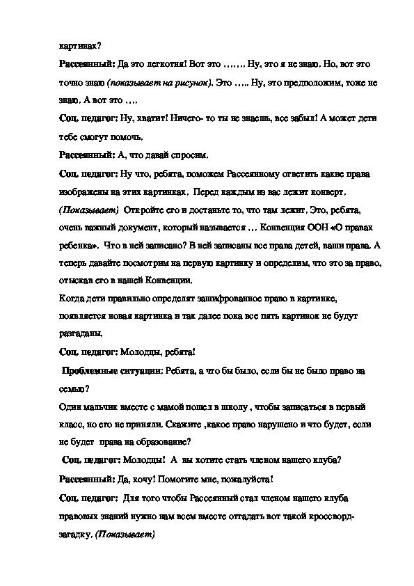 Соц.педагог: Посмотри, Рассеянный, какие права изображены на этихкартинах?