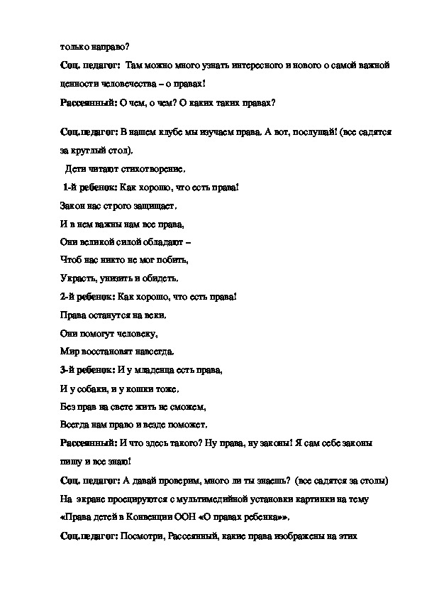Соц. педагог: Ну что, ребята, поможем Рассеянному ответить какие права