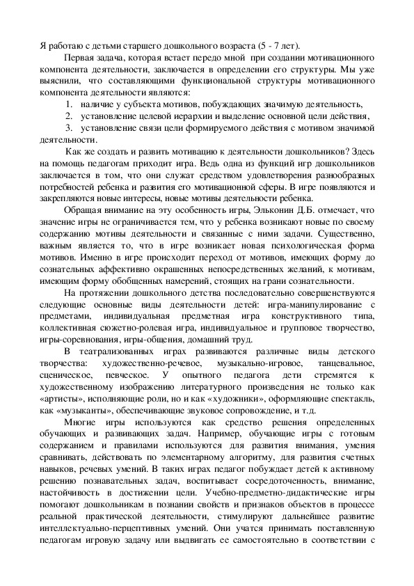 игр для развития мотивации деятельности и определили следующие задачи: