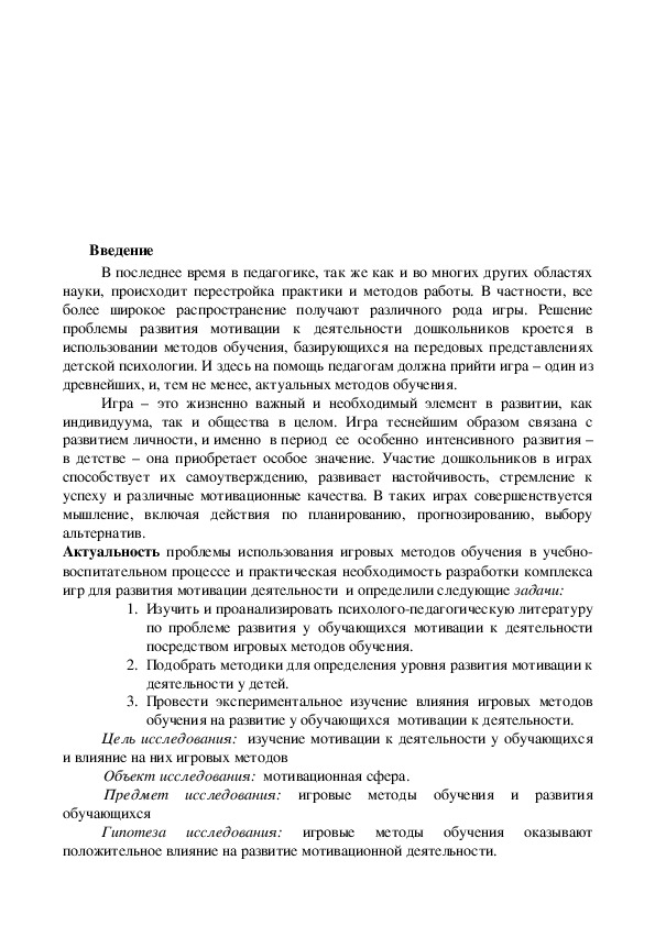 3. Провести экспериментальное изучение влияния игровых методов
