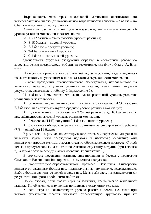Содержание педагогического исследования, а так же проведенный в