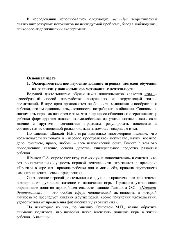 1. Экспериментальное изучение влияние игровых