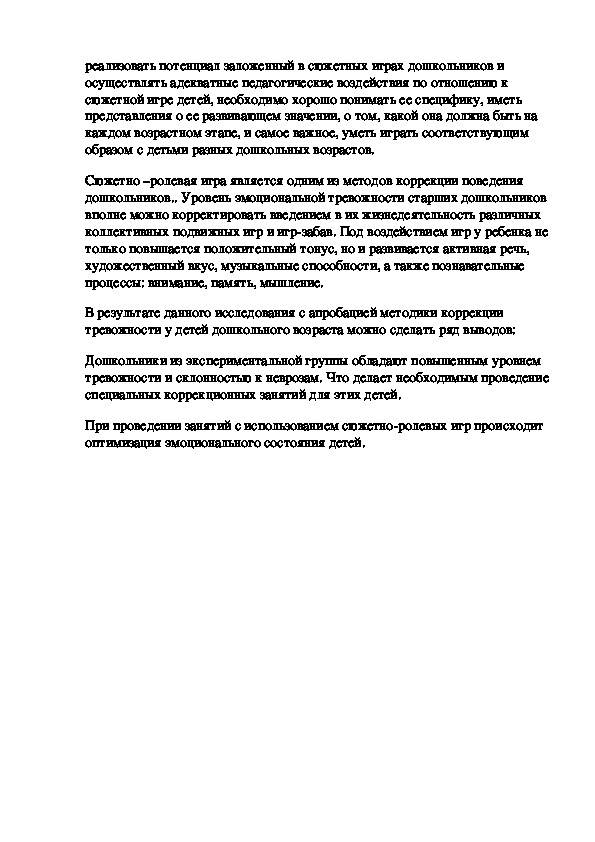 Сюжетно –ролевая игра является одним из методов коррекции поведения