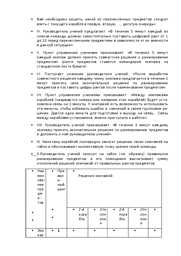 IV. Руководитель учений предлагает: «В течение 5 минут каждый из