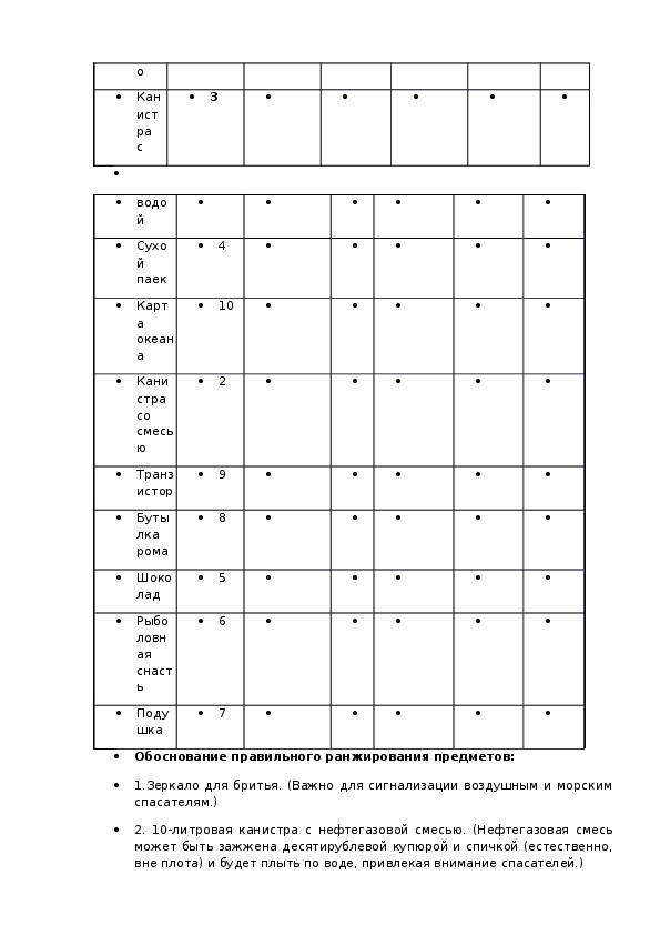 членов команды должен самостоятельно поставить цифровой ранг от 1
