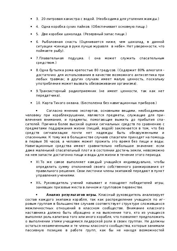 вне плота) и будет плыть по воде, привлекая внимание спасателей.) 3. 20-литровая канистра с водой. (Необходима для утоления жажды.)