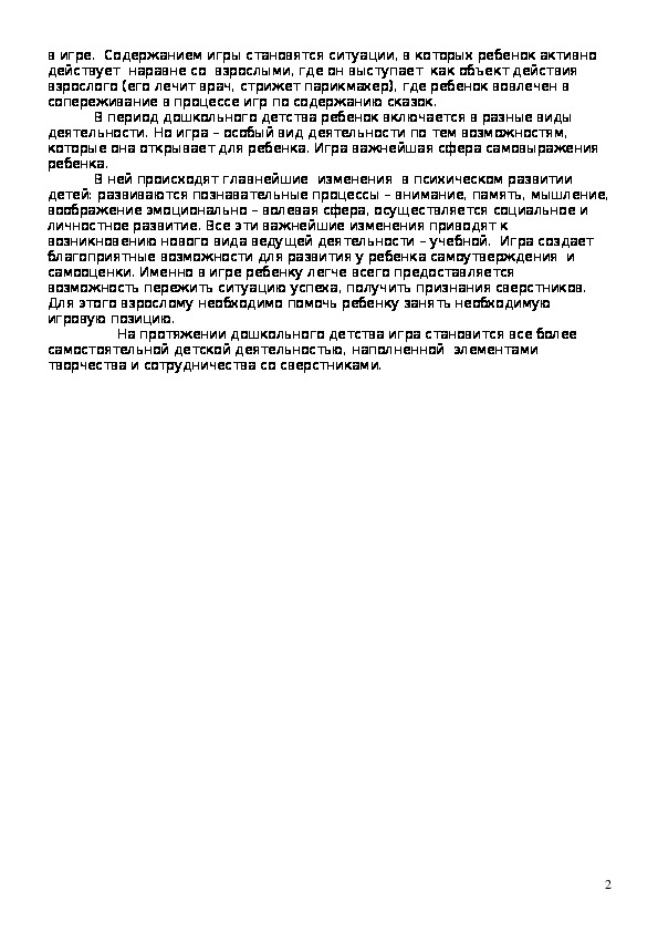 возраста, а также игра имеет большое значение в развитии ребенка.