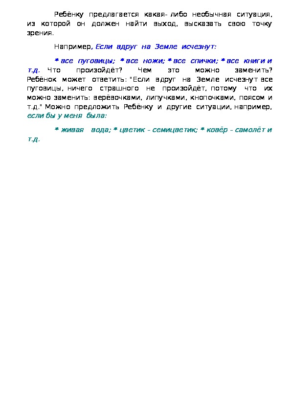 " ЕСЛИ ВДРУГ …".Ребёнку предлагается какая- либо необычная ситуация,