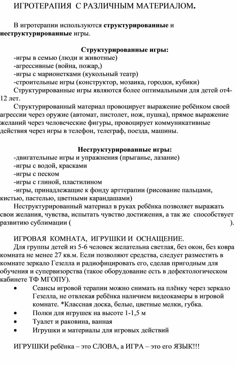 В игротерапии используются структурированные и неструктурированные игры.
