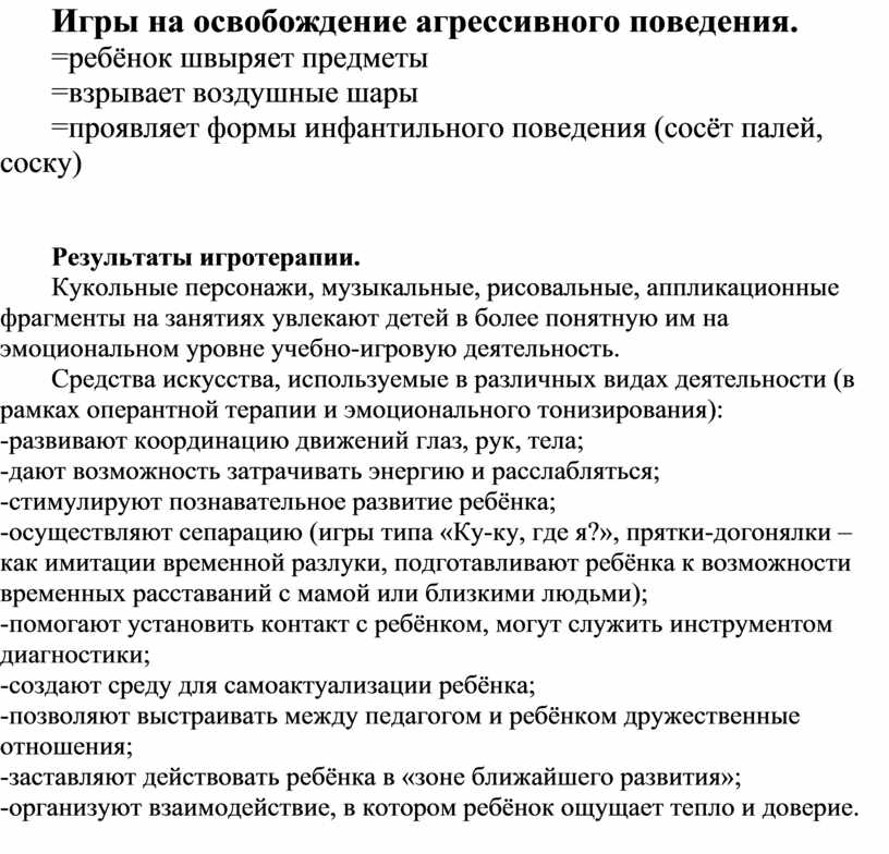 Игры на освобождение агрессивного поведения.