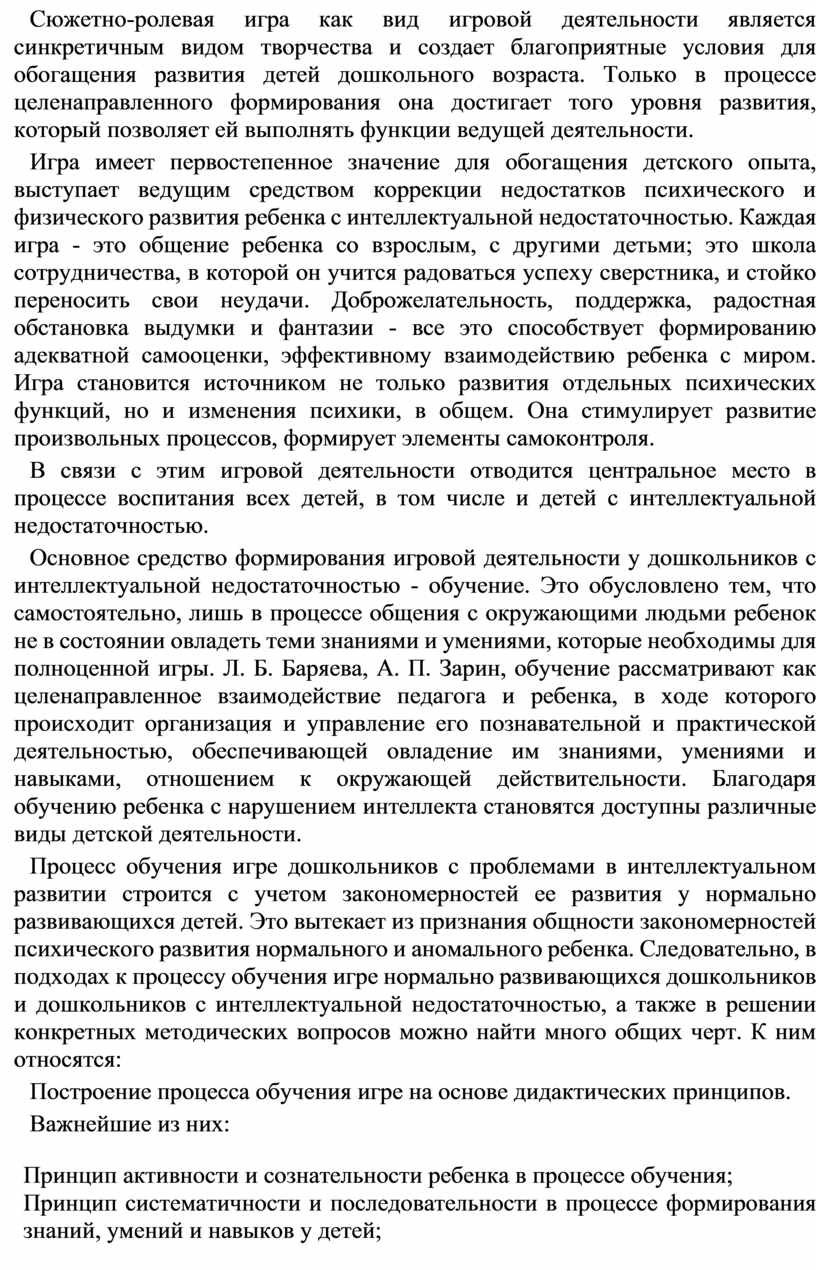 Методика обучения сюжетно-ролевой игре дошкольников с нарушением интеллекта