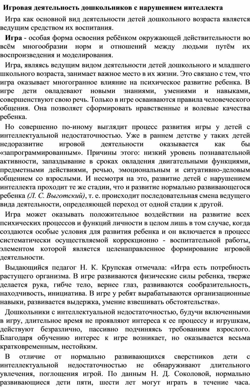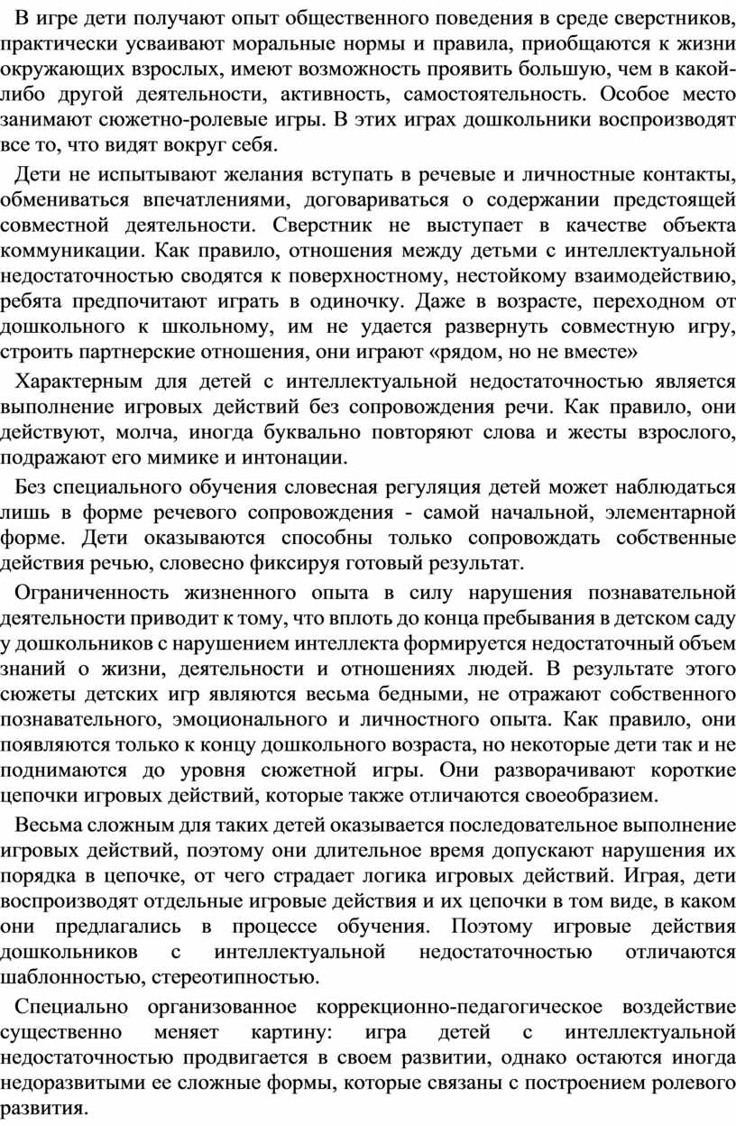 В связи с этим игровой деятельности отводится центральное место в процессе воспитания всех детей, в том числе и детей с интеллектуальной недостаточностью.