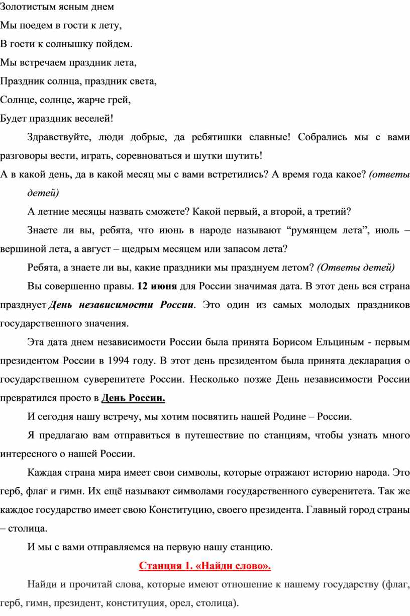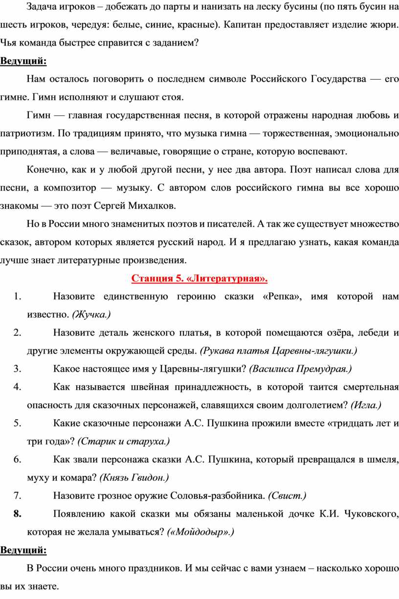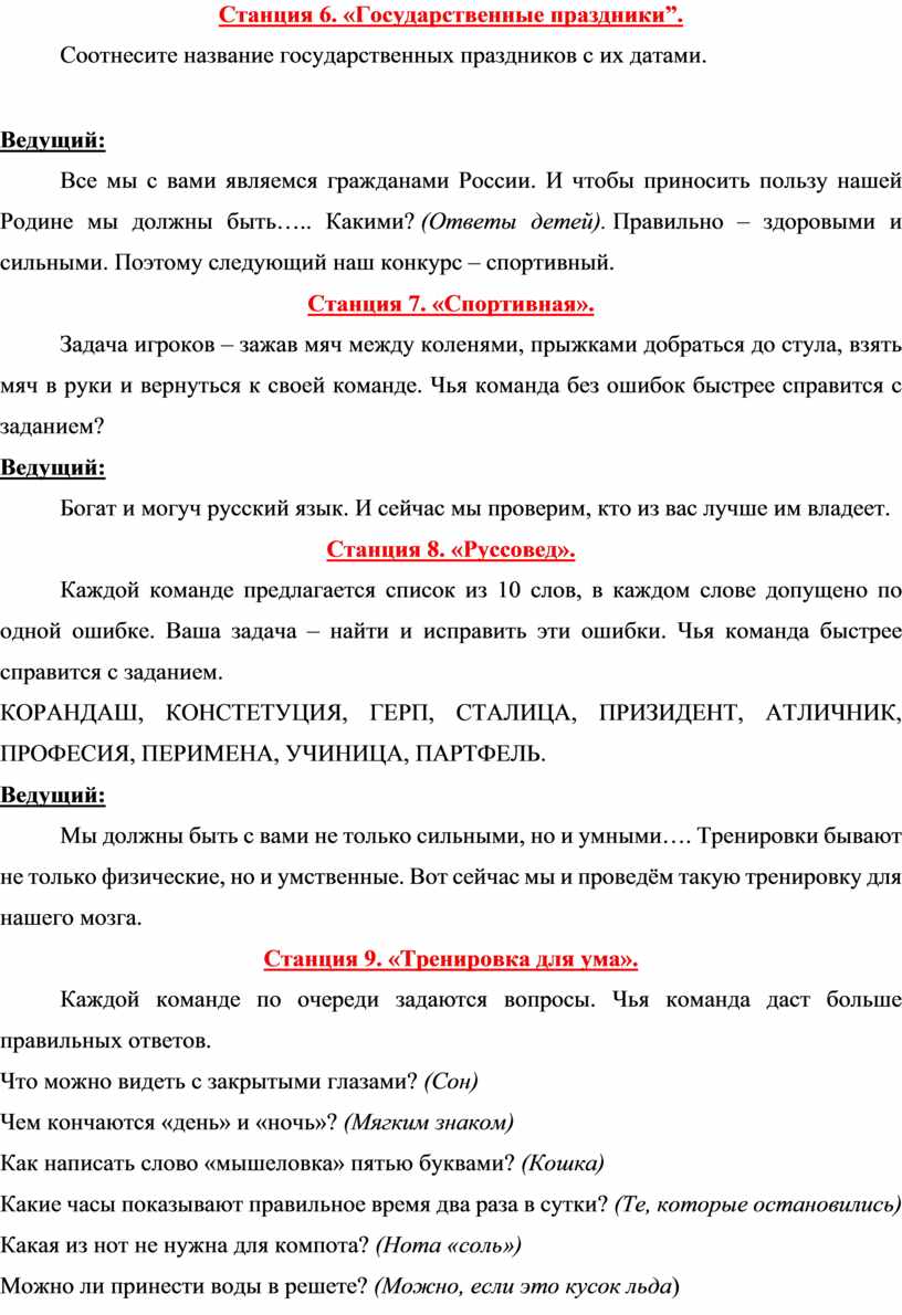 7. Станция 6. «Государственные праздники»