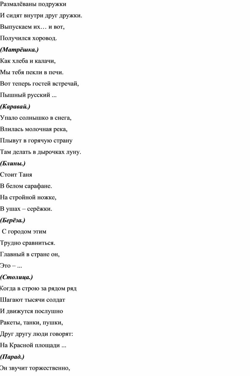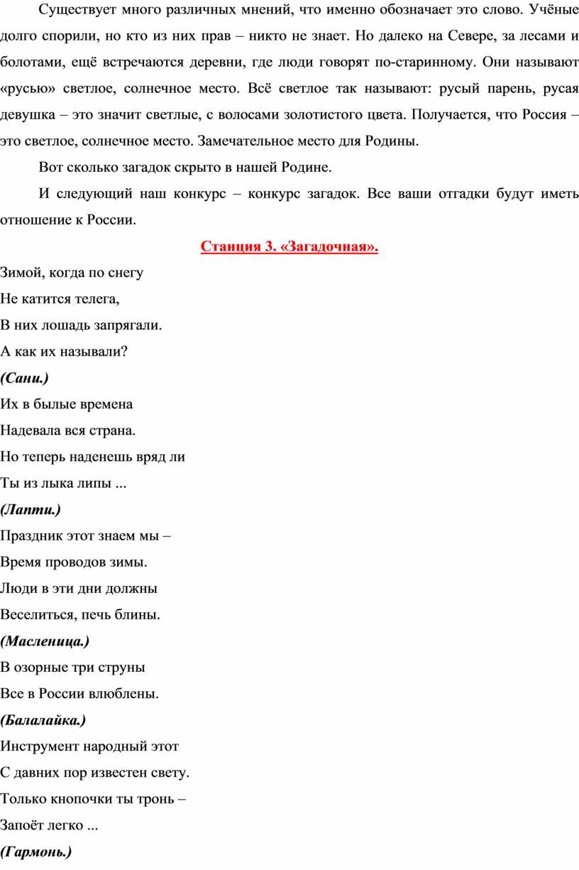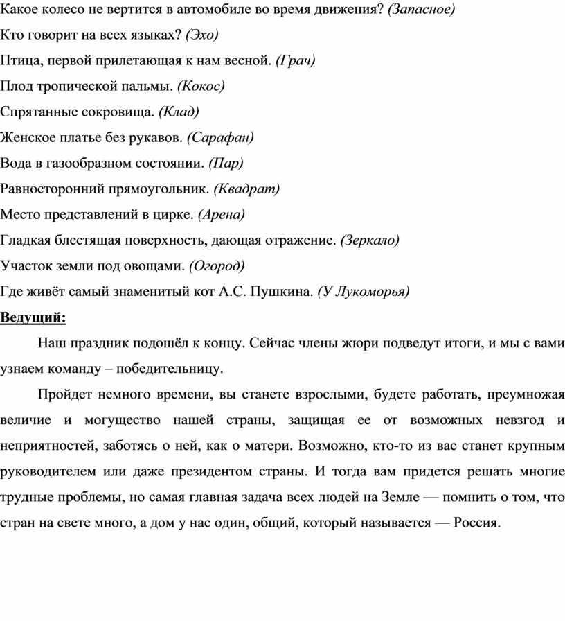 И следующий наш конкурс – конкурс загадок. Все ваши отгадки будут иметь отношение к России.