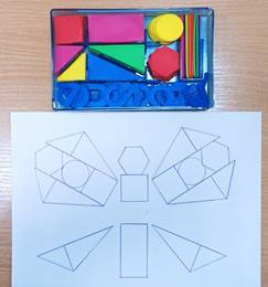 Инструкция: выложи бабочку из фигур. Назови (покажи) какие фигуры понадобятся?