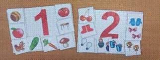 Материалы: карточки с цифрами, предметами в пределах пяти.