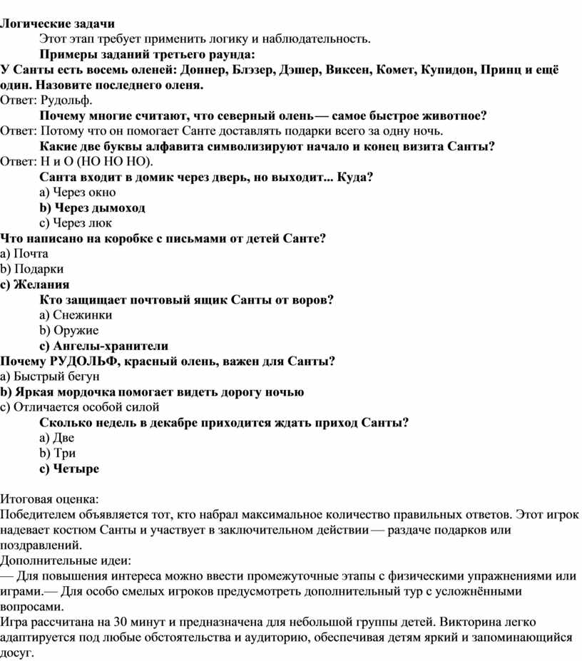 За правильный ответ участник получает очко. Участник, набравший наибольшее количество очков, побеждает и становится настоящим Санта-Клаусом.