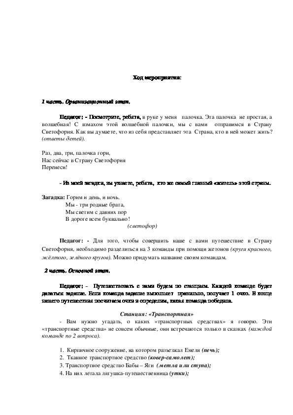 Педагог: Путешествовать с вами будем по станциям. Каждой команде будет
